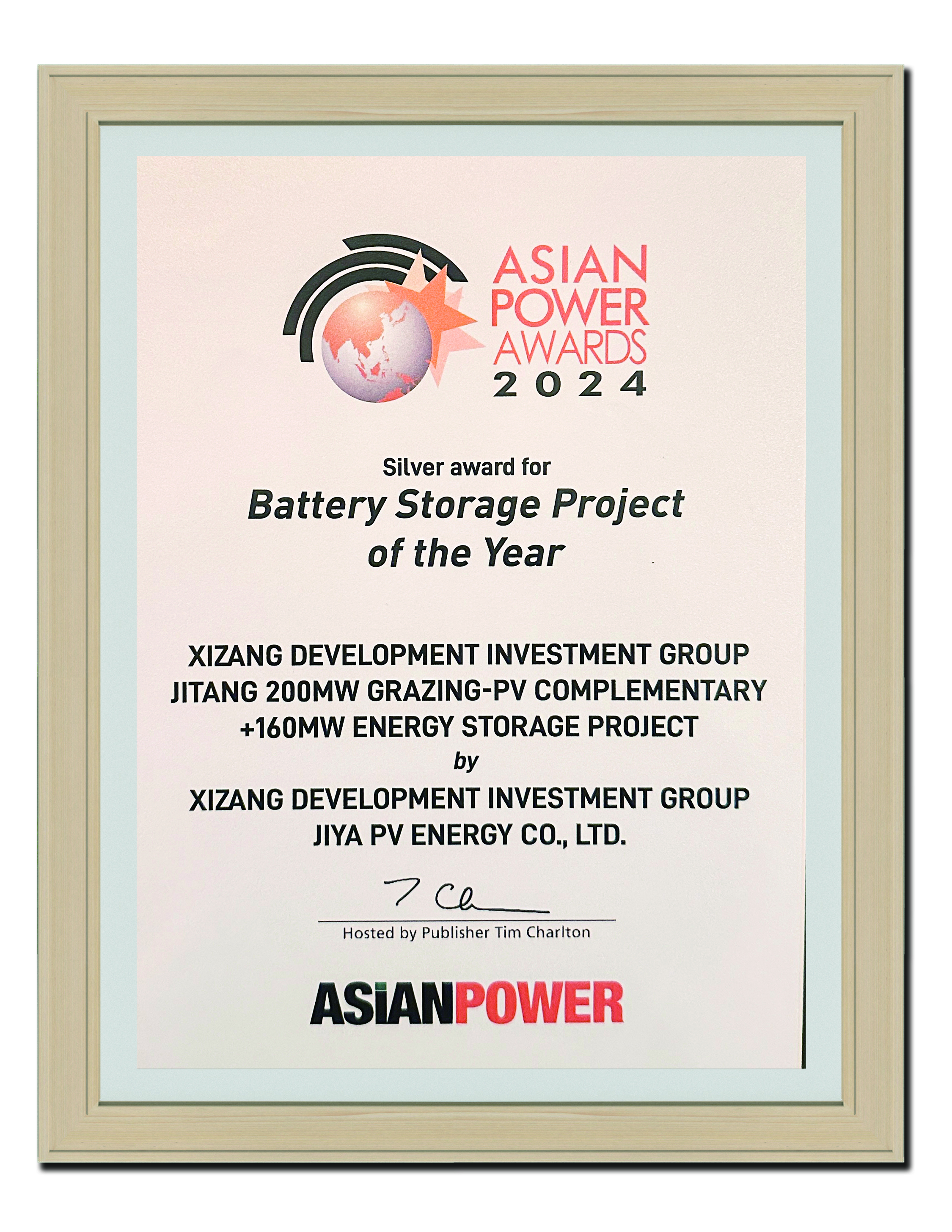 2024年亞太區(qū)年度最佳電池儲能項(xiàng)目銀獎