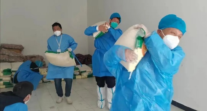 還來不及調(diào)整夜班后的身體疲倦,次日中午時(shí)分,志愿服務(wù)隊(duì)就收到了社區(qū)進(jìn)行國慶政府慰問物資配送的通知。為保證社區(qū)居民能享受到最新鮮、及時(shí)的慰問物資,隊(duì)員們重打前一晚的雞血,頂著淅淅瀝瀝的小雨和感冒被感染的風(fēng)險(xiǎn),再次手抓肩扛,將包裝完好的合計(jì)約5噸的糧油水果送到了居民手中。匆忙的腳步、簡單的交流,也讓社區(qū)百姓們漸漸讀懂了志愿服務(wù)隊(duì)的初心。