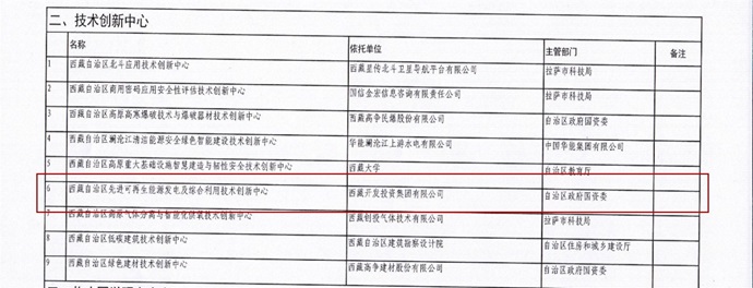 集團公司申報的“西藏自治區(qū)先進可再生能源發(fā)電及綜合利用技術創(chuàng)新中心”成功批準籌建