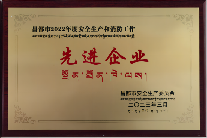 近日,昌都市安全生產(chǎn)委員會授予果多水電公司昌都市2022年度安全生產(chǎn)和消防工作先進(jìn)企業(yè)榮譽(yù)稱號。