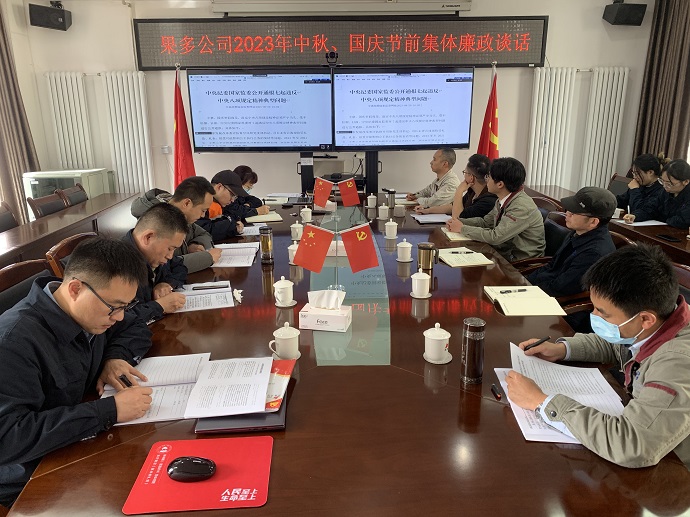 為進(jìn)一步落實(shí)黨風(fēng)廉政建設(shè)主體責(zé)任,強(qiáng)化落實(shí)中央八項(xiàng)規(guī)定精神,進(jìn)一步改進(jìn)作風(fēng),確保廉潔文明過節(jié),在中秋、國慶雙節(jié)來臨之際,中共西藏開投果多水電有限公司支部委員會(huì)組織全體干部職工開展節(jié)前集體廉政談話。