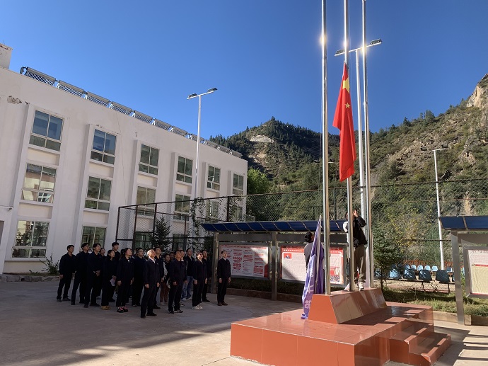 為深入學(xué)習(xí)貫徹黨的二十大精神,深刻學(xué)習(xí)領(lǐng)會習(xí)近平新時代中國特色社會主義思想,引領(lǐng)廣大干部職工賡續(xù)紅色基因,厚植愛國主義情懷。10月1日上午十點,果多水電公司全體干部職工整齊列隊、精神抖擻,舉行莊嚴(yán)的“喜迎國慶”升國旗儀式,熱烈慶祝祖國華誕74周年。