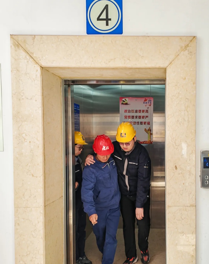 演練模擬廠房電梯因電氣故障導(dǎo)致人員被困場景,演練過程中公司應(yīng)急指揮高效、分工明確、緊張有序,在電梯維保技術(shù)人員指導(dǎo)下,通過標(biāo)準(zhǔn)化救援操作成功將被困人員安全救出。