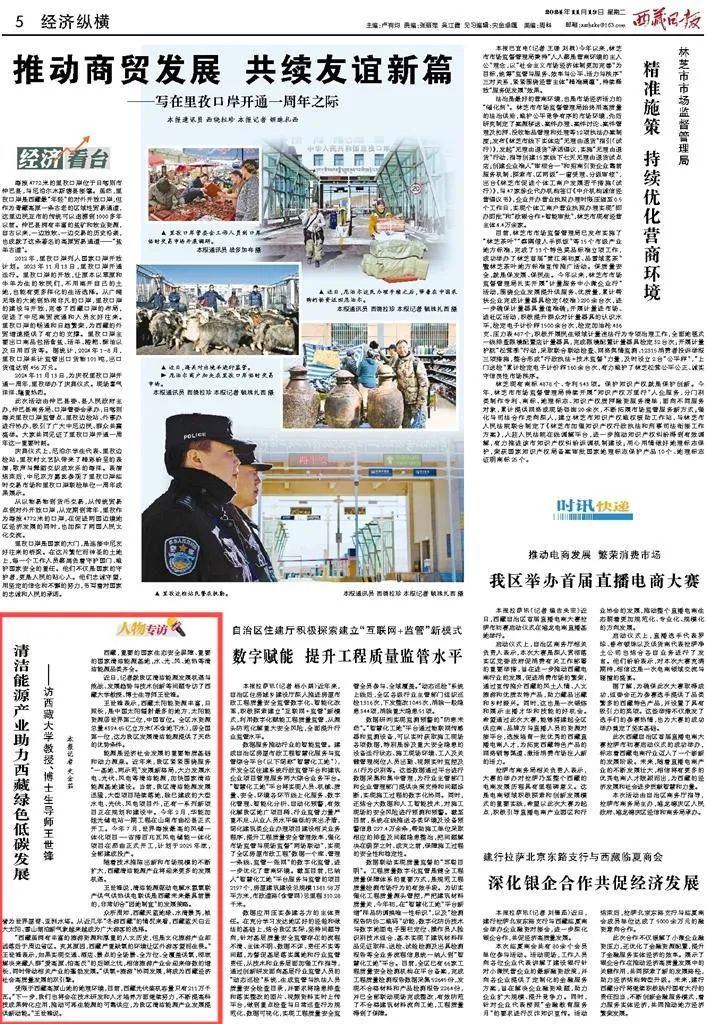 近日,記者就我區(qū)清潔能源發(fā)展機(jī)遇與挑戰(zhàn)、發(fā)展趨勢(shì)與技術(shù)創(chuàng)新等問題專訪了西藏大學(xué)教授、博士生導(dǎo)師王世鋒。