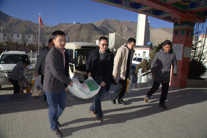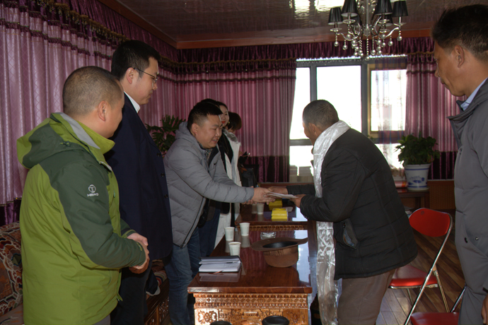 柳梧村村委達(dá)瓦書記對(duì)大家的到來表示熱烈的歡迎,對(duì)西藏開投集團(tuán)組織開展這項(xiàng)工作表示贊賞。他說:“西藏開投集團(tuán)是區(qū)管國(guó)有企業(yè)中第一家組織在職黨員進(jìn)我們社區(qū)開展慰問的企業(yè),意義重大,效果明顯。西藏開投集團(tuán)成立雖晚,但在積極參與社會(huì)主義新西藏建設(shè)中邁的步伐很大,工作做的實(shí)在,體現(xiàn)了西藏開投集團(tuán)的責(zé)任擔(dān)當(dāng)。通過今天的活動(dòng),不但加深了雙方的熟悉和了解,而且也讓柳梧村的牧民百姓,尤其是受到西藏開投集團(tuán)特殊慰問關(guān)懷的2戶老黨員更加感受到了黨的溫暖和關(guān)愛,更加會(huì)珍惜這個(gè)來之不易的幸福生活”。