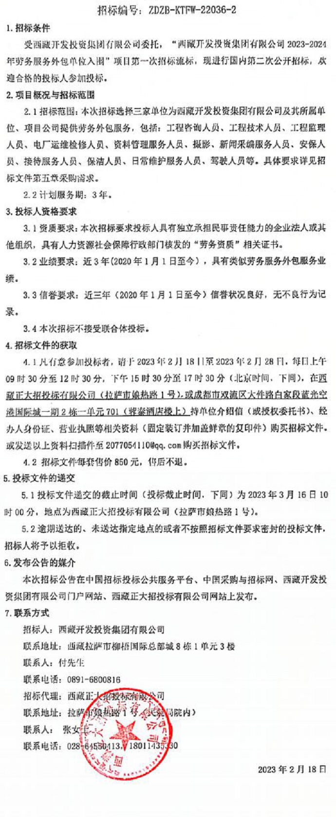 西藏開發(fā)投資集團(tuán)有限公司2023-2024年勞務(wù)服務(wù)外包單位入圍招標(biāo)公告