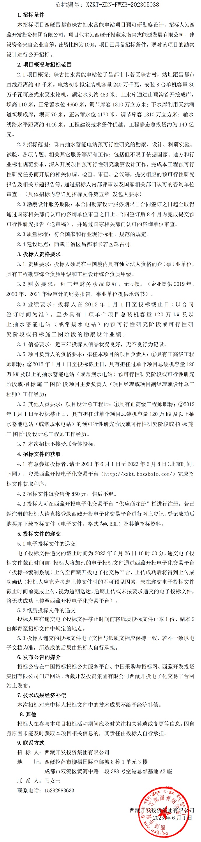 西藏昌都市珠古抽水蓄能電站項目預可研勘察設計招標公告