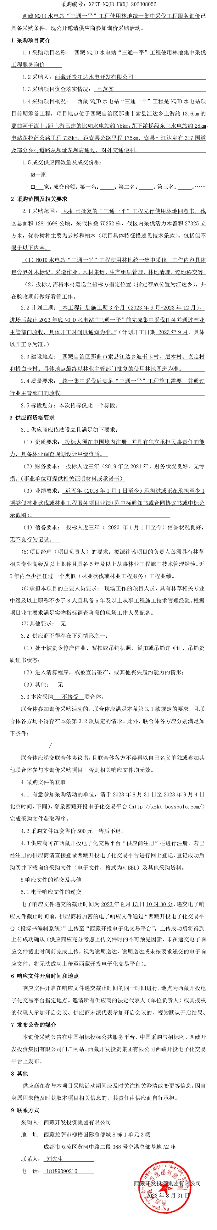 西藏NQJD水電站“三通一平”工程使用林地統(tǒng)一集中采伐工程服務(wù)詢價(jià)采購公告