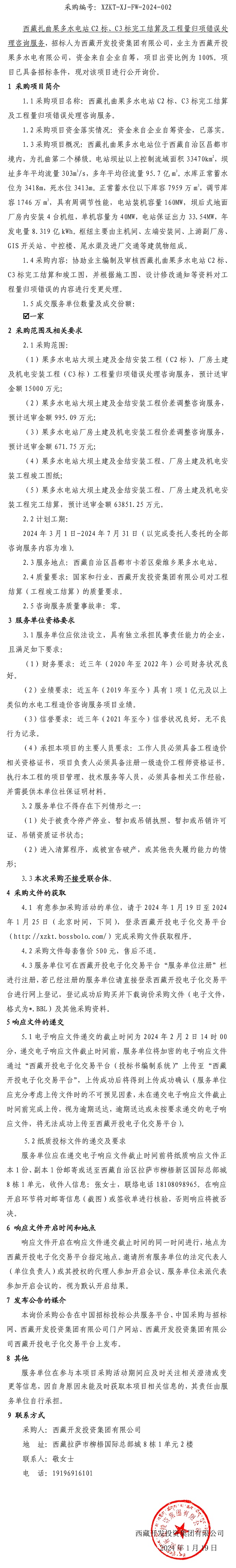 西藏扎曲果多水電站 C2 標(biāo)、C3 標(biāo)完工結(jié)算及工程量歸項(xiàng)錯(cuò)誤處理咨詢服務(wù)詢價(jià)采購(gòu)公告