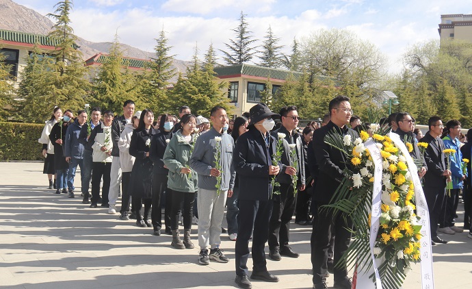 拉薩市烈士陵園內(nèi)松柏蒼翠、莊嚴(yán)肅穆。在革命烈士紀(jì)念碑前,參加活動的全體黨員職工重溫了入黨誓詞、合唱國歌并敬獻(xiàn)鮮花、清掃陵園,向革命先輩們致以最崇高的敬意和表達(dá)無盡哀思與懷念。