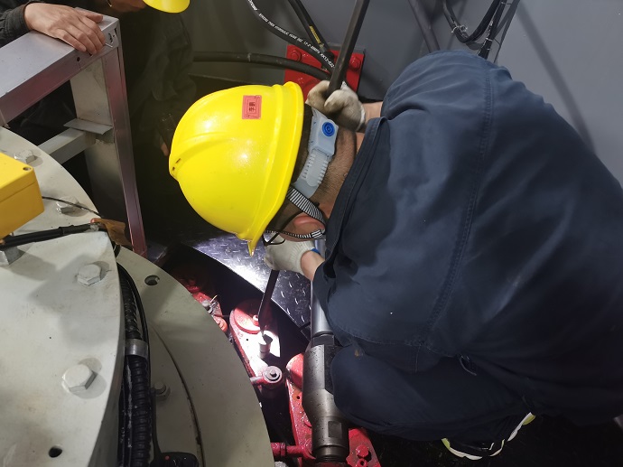 藏中電網(wǎng)異步聯(lián)網(wǎng)運(yùn)行期間,雷雨季節(jié)易受雷擊容易跳閘。根據(jù)《電網(wǎng)運(yùn)行風(fēng)險(xiǎn)預(yù)警通知單》要求,金橋水電站及時(shí)調(diào)整運(yùn)行方式。9月17日至18日,利用機(jī)組停機(jī)時(shí)間,公司組織對(duì)1號(hào)、2號(hào)機(jī)組開(kāi)展過(guò)流部件檢查工作,及時(shí)對(duì)蝸殼異物進(jìn)行清理和更換剪斷銷,全力保障機(jī)組安全穩(wěn)定運(yùn)行。