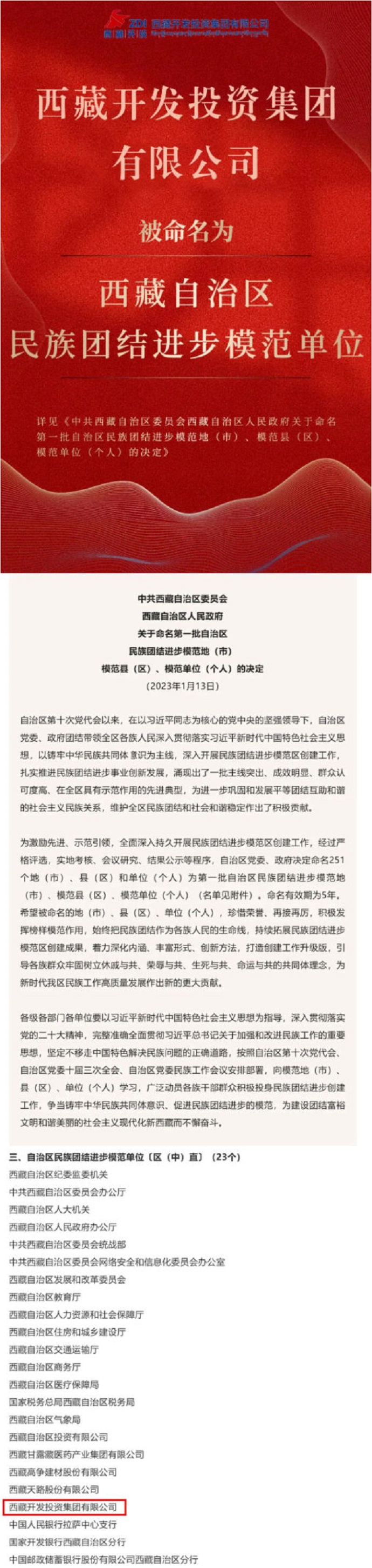 捷報傳來 _ 西藏開投集團被命名為“西藏自治區(qū)民族團結進步模范單位”