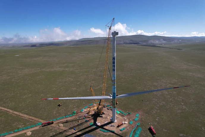 面對超高海拔、極低空氣密度、嚴(yán)寒缺氧、生態(tài)脆弱等困難挑戰(zhàn),項(xiàng)目團(tuán)隊(duì)優(yōu)化了風(fēng)機(jī)葉片氣動外形與材料抗低溫性能,首次實(shí)現(xiàn)單機(jī)5MW級風(fēng)機(jī)在4900米海拔的模塊化集成設(shè)計。同時,通過生物酶催化軟基固結(jié)試驗(yàn),篩選耐低溫酶系,構(gòu)建“酶-土-溫度”動態(tài)反應(yīng)模型,即優(yōu)化了沼澤區(qū)道路固化參數(shù),也最大限度減少對生態(tài)脆弱地區(qū)的草甸破壞及生態(tài)擾動。