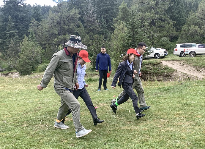 座談結(jié)束后,全體黨員面向黨旗莊嚴(yán)宣誓,重溫入黨誓詞,激勵(lì)永葆入黨初心。最后,兩支部開(kāi)展了以“重溫紅色”為主題的戶外團(tuán)建活動(dòng),通過(guò)重走長(zhǎng)征路、黨建知識(shí)問(wèn)答、紅色詞匯你比我猜、兩人三足等活動(dòng)進(jìn)一步增進(jìn)支部交流互動(dòng)?;顒?dòng)現(xiàn)場(chǎng),參賽隊(duì)員充分發(fā)揚(yáng)團(tuán)隊(duì)精神,積極參與,精誠(chéng)合作,加油聲、吶喊聲、歡呼聲此起彼伏。
