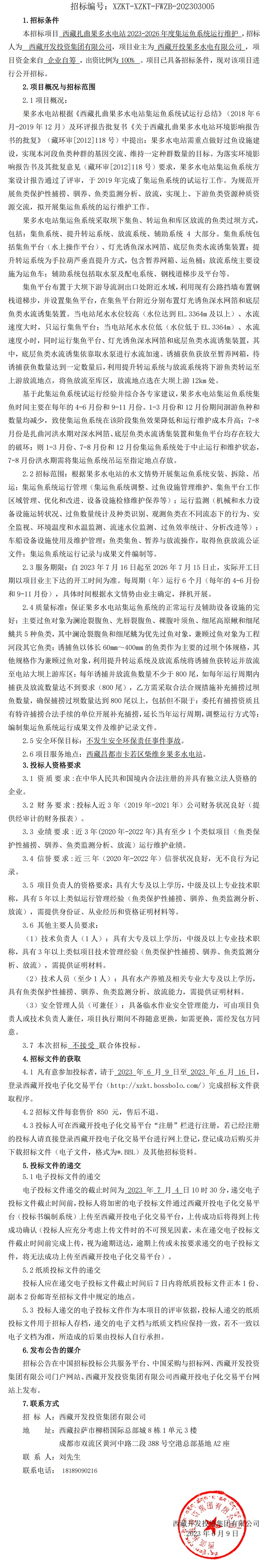 西藏扎曲果多水電站2023-2026年度集運(yùn)魚系統(tǒng)運(yùn)行維護(hù)招標(biāo)公告