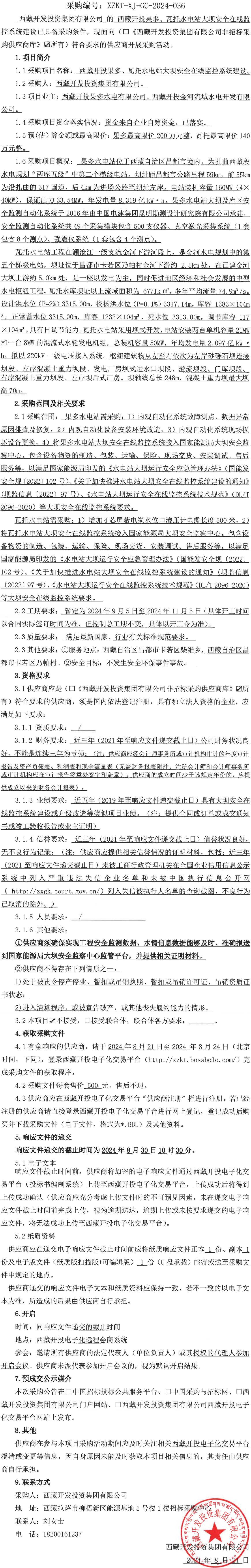 西藏開投果多、瓦托水電站大壩安全在線監(jiān)控系統(tǒng)建設詢價采購公告