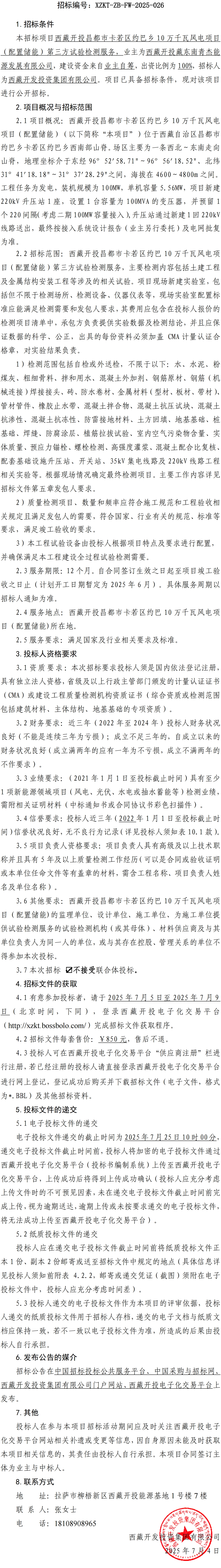 西藏開投昌都市卡若區(qū)約巴鄉(xiāng) 10 萬千瓦風電項目(配置儲能) 第三方試驗檢測服務(wù)招標公告